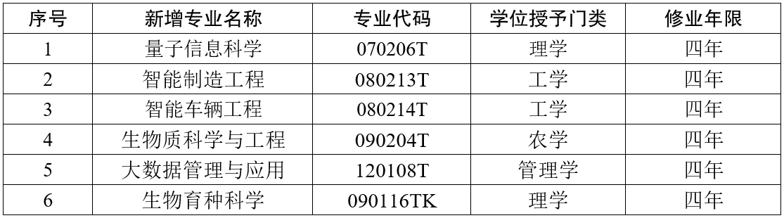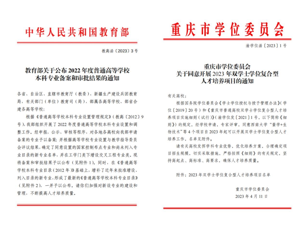 近日,教育部发布《关于公布2022年度普通高等学校本科专业备案和审批结果的通知》、市学位委员会发布《关于同意开展 2023 年双学士学位复合型人才培养项目的通知》,我校申报的量子信息科学、智能制造工程、智能车辆工程、生物质科学与工程、大数据管理与应用、生物育种科学 6个专业以及“蚕学+生物技术”1个双学士学位复合型人才培养项目成功获批。
