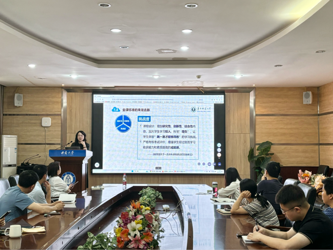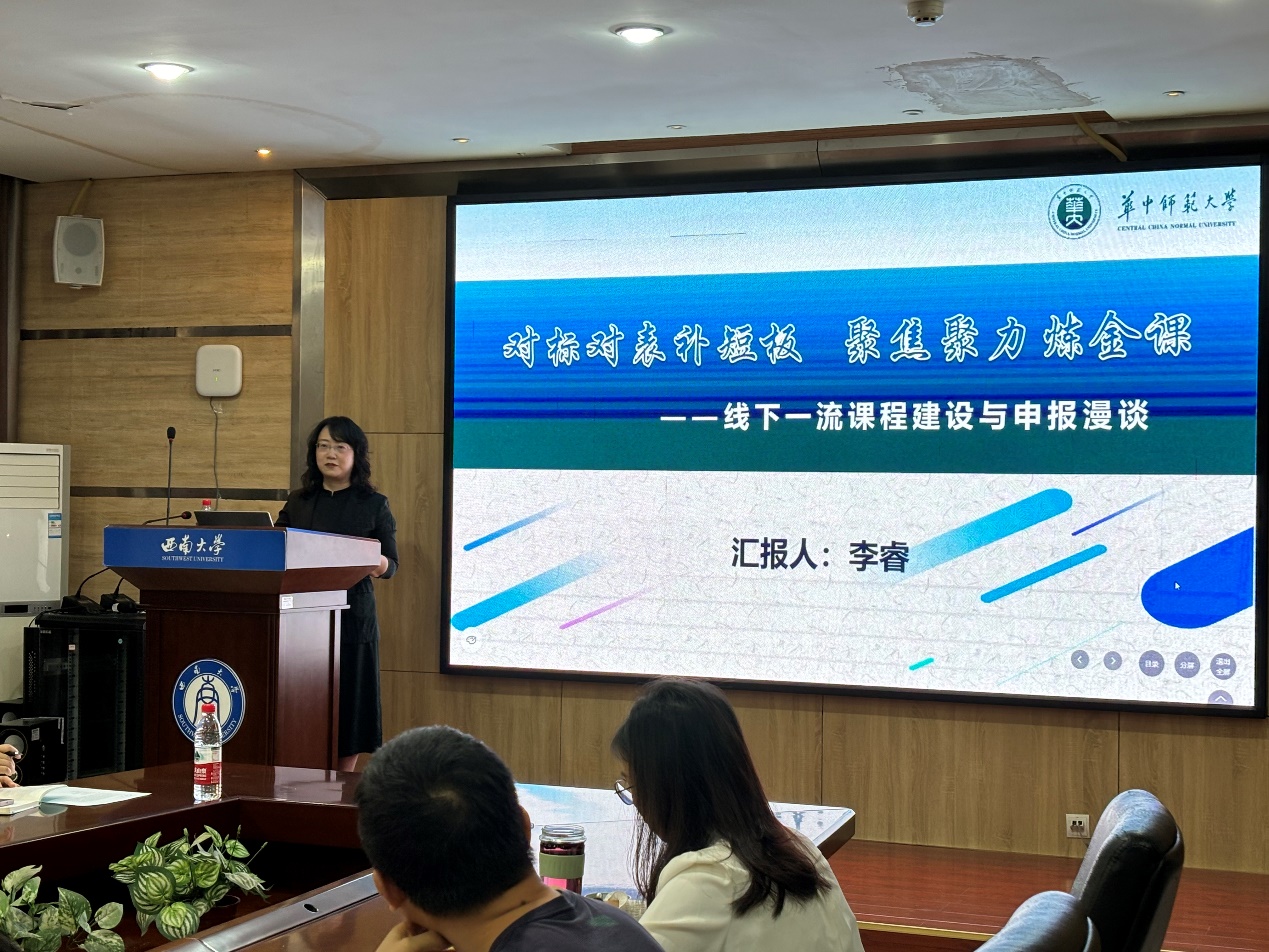 课程是落实立德树人根本任务的具体化、操作化和目标化,是提高本科教学质量的重要途径,一流的课程建设是贯彻“以本为本”和“四个回归”本科教育理念的关键,也是培养一流人才的关键。为积极响应学校关于本科人才培养改革,推动我院高质量教育体系建设,加强课程内涵发展,全面提升课程质量,近日,我院邀请华中师范大学李睿教授开展关于“线下一流课程的建设与申报”讲座,交流分享本科一流课程建设与申报的相关经验,此次讲座由新能源材料系主任乔琰副教授主持。