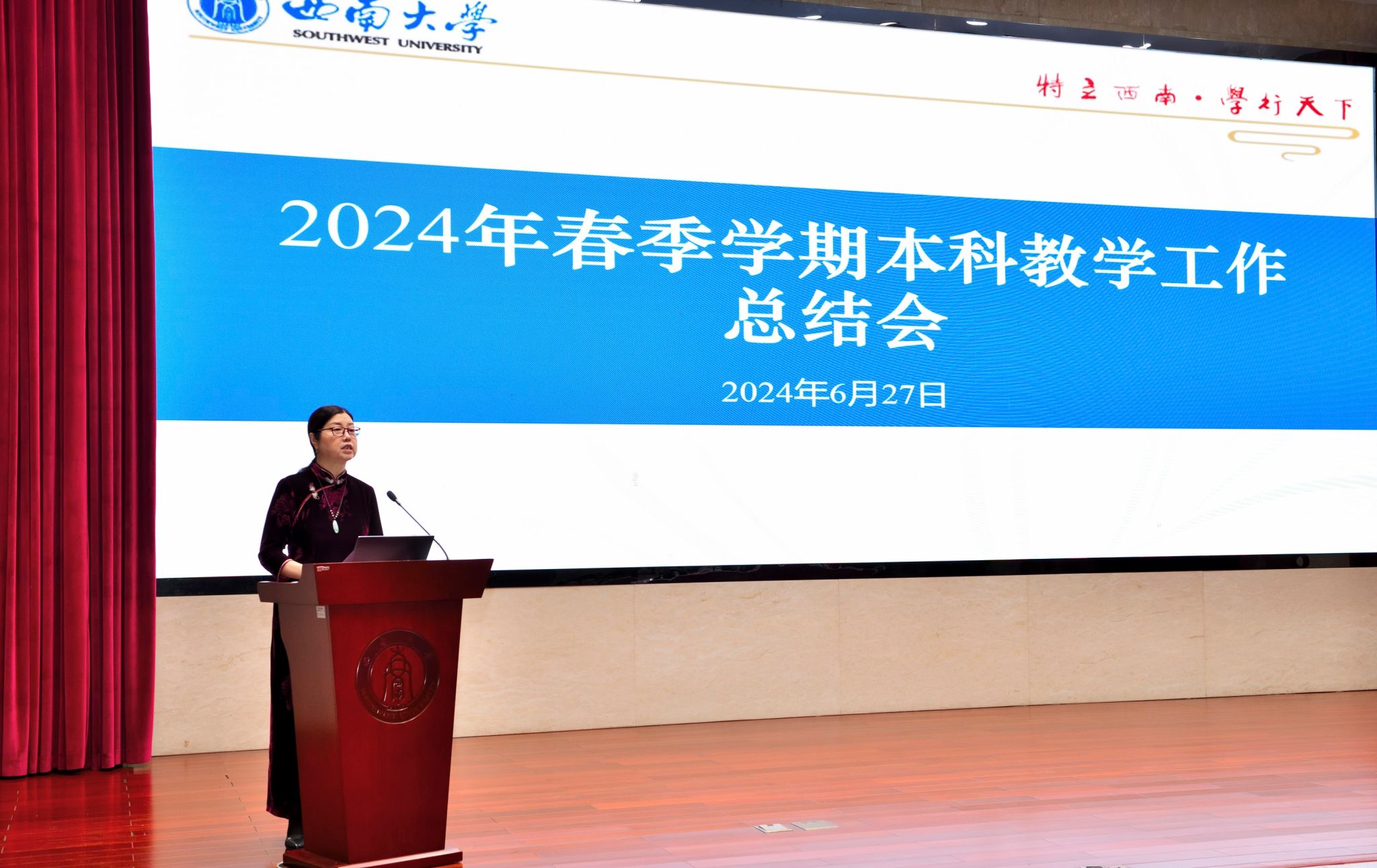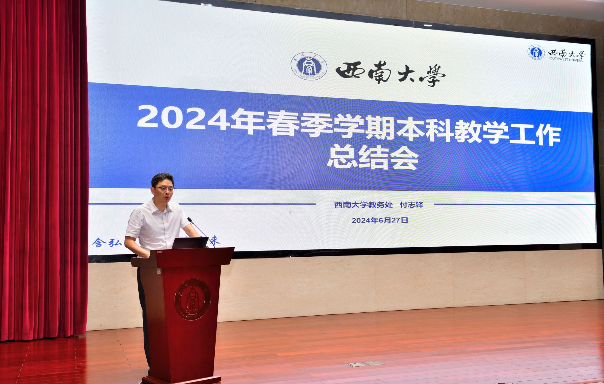 教务处处长付志锋围绕近期教育部在专业建设、拔尖创新人才培养、公费师范生培养改革等方面的重大决策部署,对2024年春季学期本科教学工作成效进行了全面系统总结,重点强调了专业布局结构调整优化、一流专业建设点验收、公费师范生本研衔接、教师教学能力提升、智慧教室建设等工作的推进落实,并对下学期的工作要点进行安排部署。