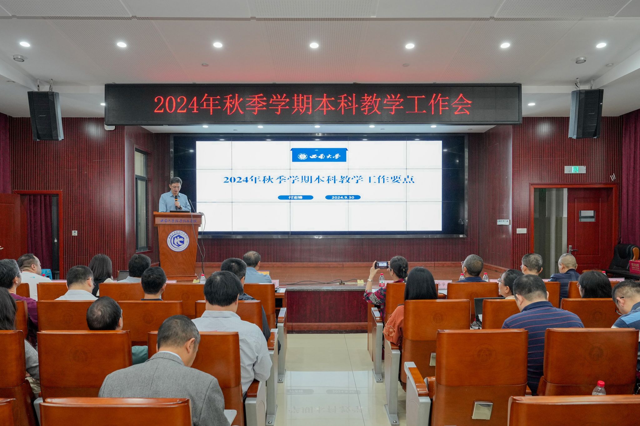 为深入贯彻落实党的二十届三中全会和全国教育大会精神,奋力推进教育强国建设。930日,学校召开2024年秋季学期本科教学工作会,副校长周光明出席会议并讲话。本科教学督导委员会委员代表,各学院(部)本科教学工作负责人、教学工作办公室主任、教学秘书,教务处全体干部参加会议。会议由教务处副处长吴娟主持。