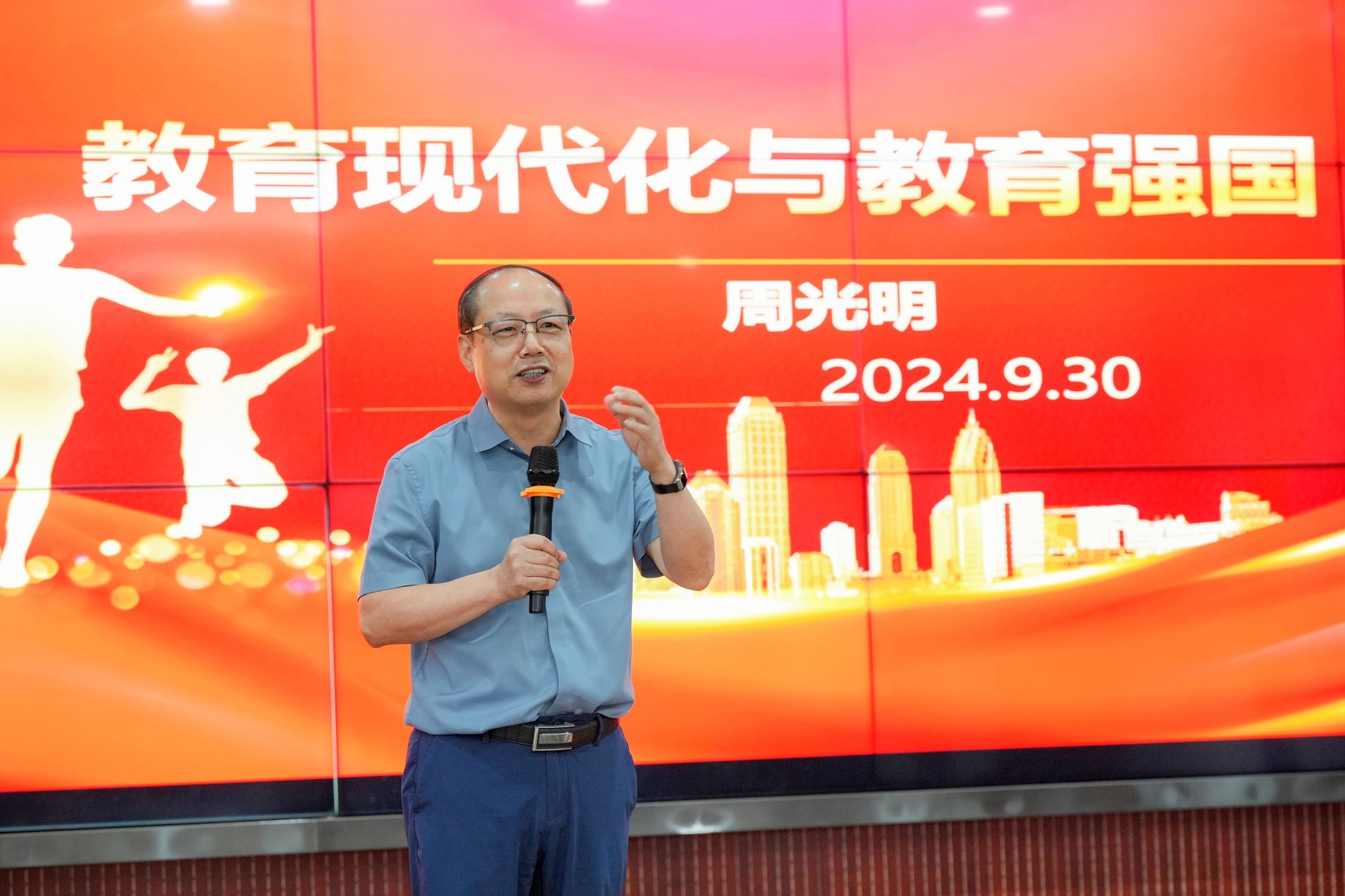 周光明以“教育现代化与教育强国”为题作主旨报告,他从教育现代化与教育强国的辩证关系,教育现代化的内涵,教育强国的特征三个方面分析了如何以教育现代化助推教育强国建设。他指出,教育现代化是建设教育强国的必由之路,教育强国是教育现代化的目标追求。教育现代化包含教育观念、内容、方法、管理的现代化。重点阐述了教育强国的三大定位、六大特征、需要正确处理的五大关系、八大核心任务等具体内容,对学校深入学习贯彻落实全国教育大会精神具有重要的指导和启发作用。下一步,学校将紧紧围绕立德树人根本任务,聚焦教育强国建设,着力培养卓越人才,为推动新时代教育高质量发展贡献西大力量。