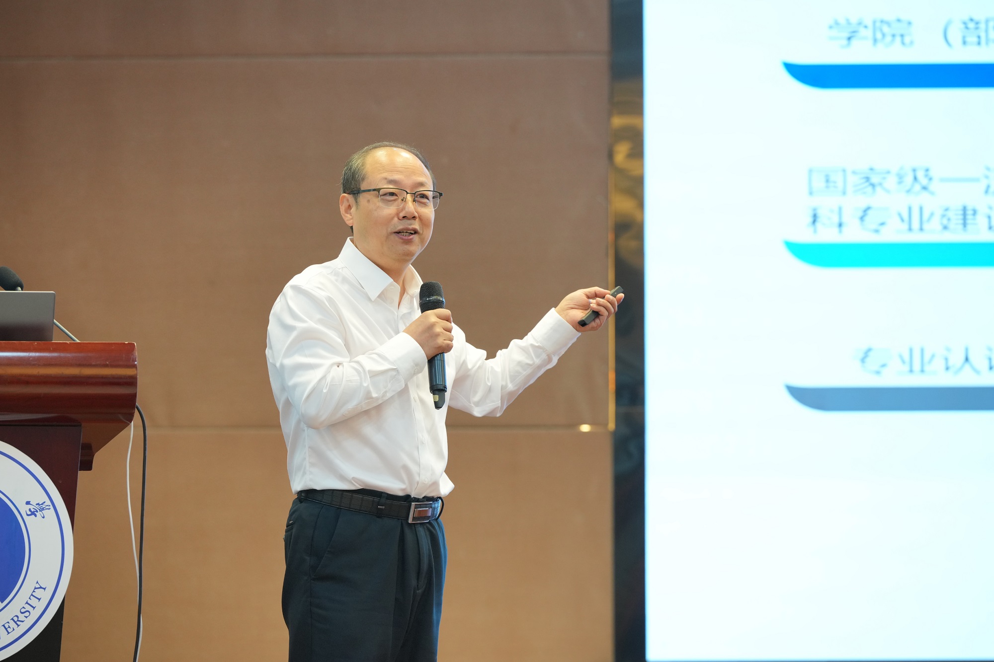 为全面贯彻落实党的二十大、二十届三中全会、全国教育大会精神,进一步解放思想、更新理念、凝聚共识,共同谋划学校本科教育事业高质量发展。10月24日上午,学校召开“以本为本、以生为本,全面推进卓越人才培养”本科教育教学思想大讨论启动会,学校党委书记张卫国、校长王进军、党委副书记夏玉峰、副校长周光明、副校长韩旭东、副校长葛信勇出席会议。学校正处级领导干部、有关科研机构负责人、各二级学院(部)本科教学工作副院(部)长、党委副书记以及教师代表参加会议,会议由副校长韩旭东主持。