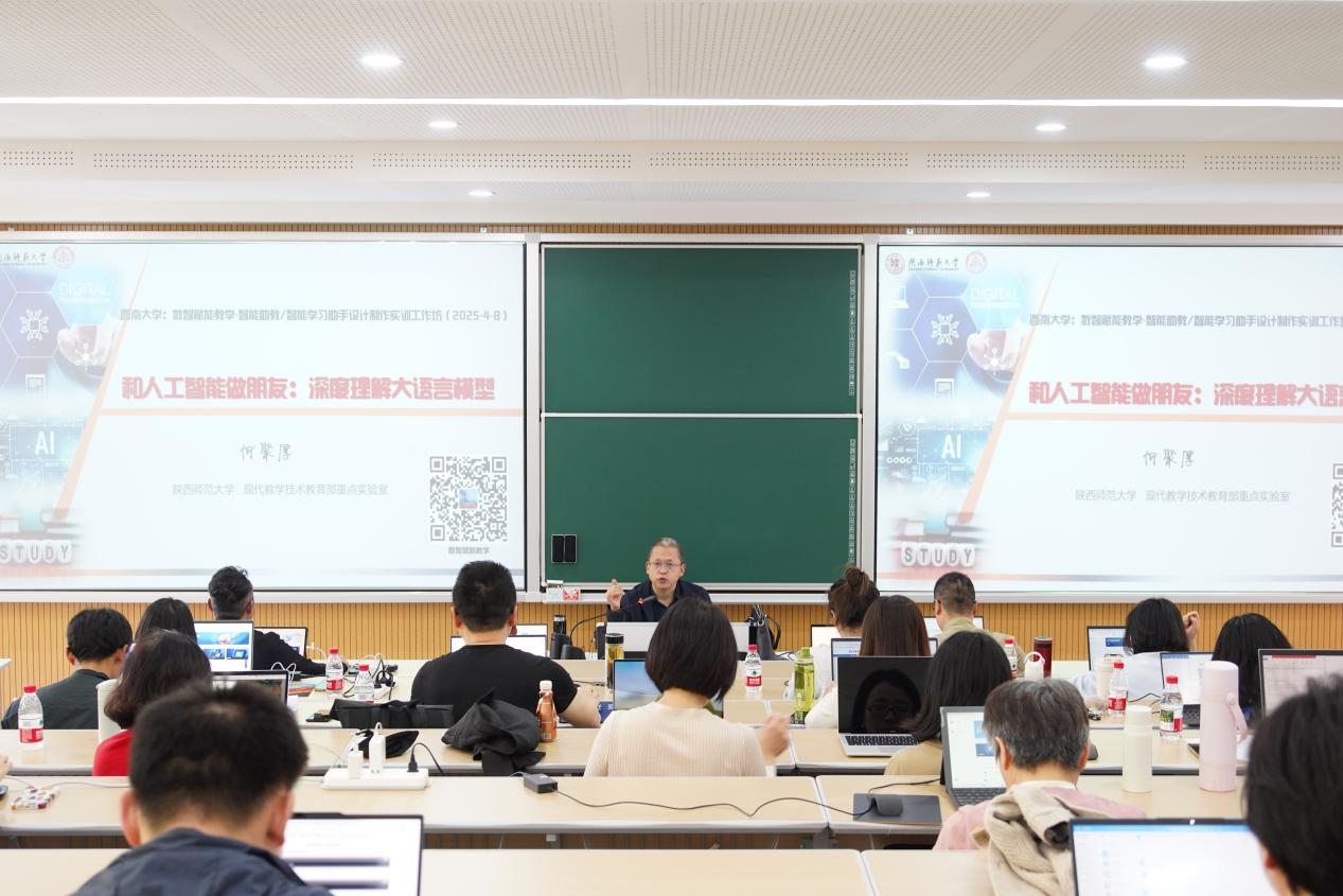 4月8日至9日,学校在31教208教室举办了“数智赋能教学转型:教学智能体设计制作深度实训工作坊”。本次工作坊邀请陕西师范大学现代教学技术教育部重点实验室何聚厚教授智慧教学创新研究团队作现场指导,旨在通过双主线项目驱动模式,将数智赋能教学理念与AI工具应用实训深度融合,探索人工智能技术赋能教育转型的实践路径。经前期培训、教师报名、学院(部)推荐,共40余名教师全程参与工作坊实训。
