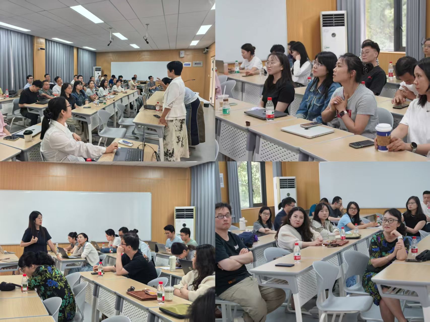 下午沙龙环节,文科组与理科组同步开启“实战经验分享”。文科组中,周莉结合高性能服装与智能装备领域的跨学科研究,分享科研反哺教学的具体路径,用鲜活案例诠释教研相长;李丹聚焦竞争法与民法教学创新,介绍法学核心课程线上资源搭建、AI 赋能教学的方法,并分享“高效互动、精准反馈”的实用技巧。理科组里,梅家琴作为学校首批数字化骨干教师,结合“全信息化混合式教学”案例,讲述植物资源学课程线上教学的探索历程,拆解信息化破解教学难点的关键;胡莎依托信息检索、知识图谱的科研积累,交流数据库专业课程建设思路,探讨“科研新思维融入课堂”的路径;郭婷则针对制药专业教学痛点,分享混合式教学提升学生专业素养与实践能力的经验。
