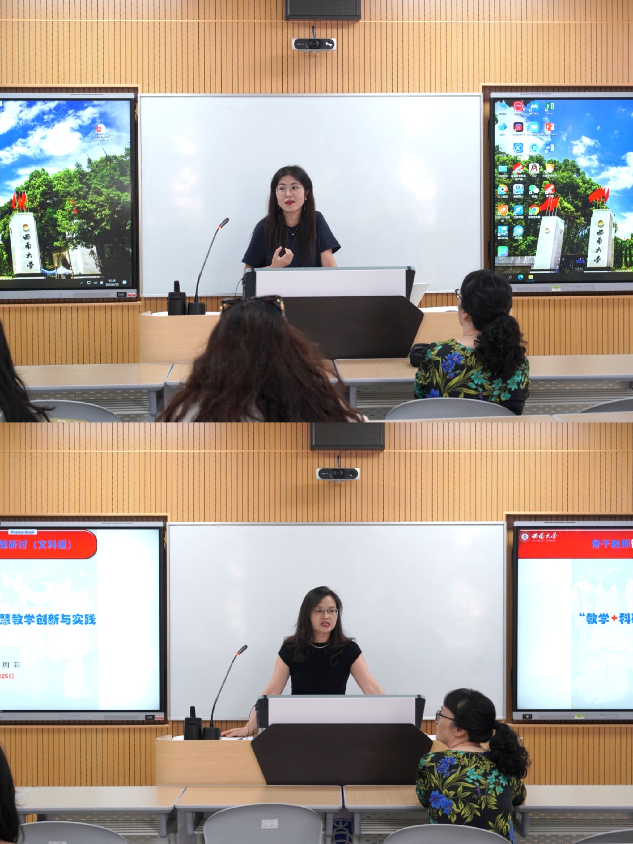 9月25日,PA视讯在智慧教学楼举办2025年青年教师教学能力提升培训第二期暨骨干教师沙龙第一期。培训邀请超星泛雅集团数字化教育培训师杨芬、学校智慧教室项目负责人周海洋主讲;骨干教师沙龙分文科组、理科组同步开展,分别由蚕桑纺织与生物质科学学院周莉教授、法学院李丹副教授,以及农学与生物科技学院梅家琴教授、计算机与信息科学学院 软件学院胡莎老师、药学院 中医药学院郭婷老师担任分享嘉宾,近百名教师现场参与。
