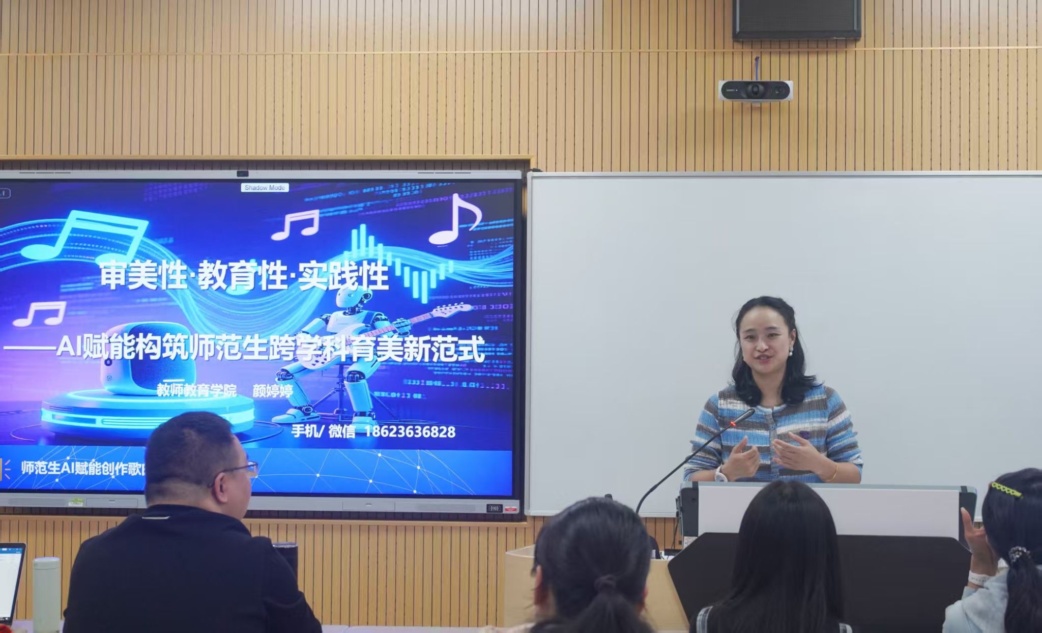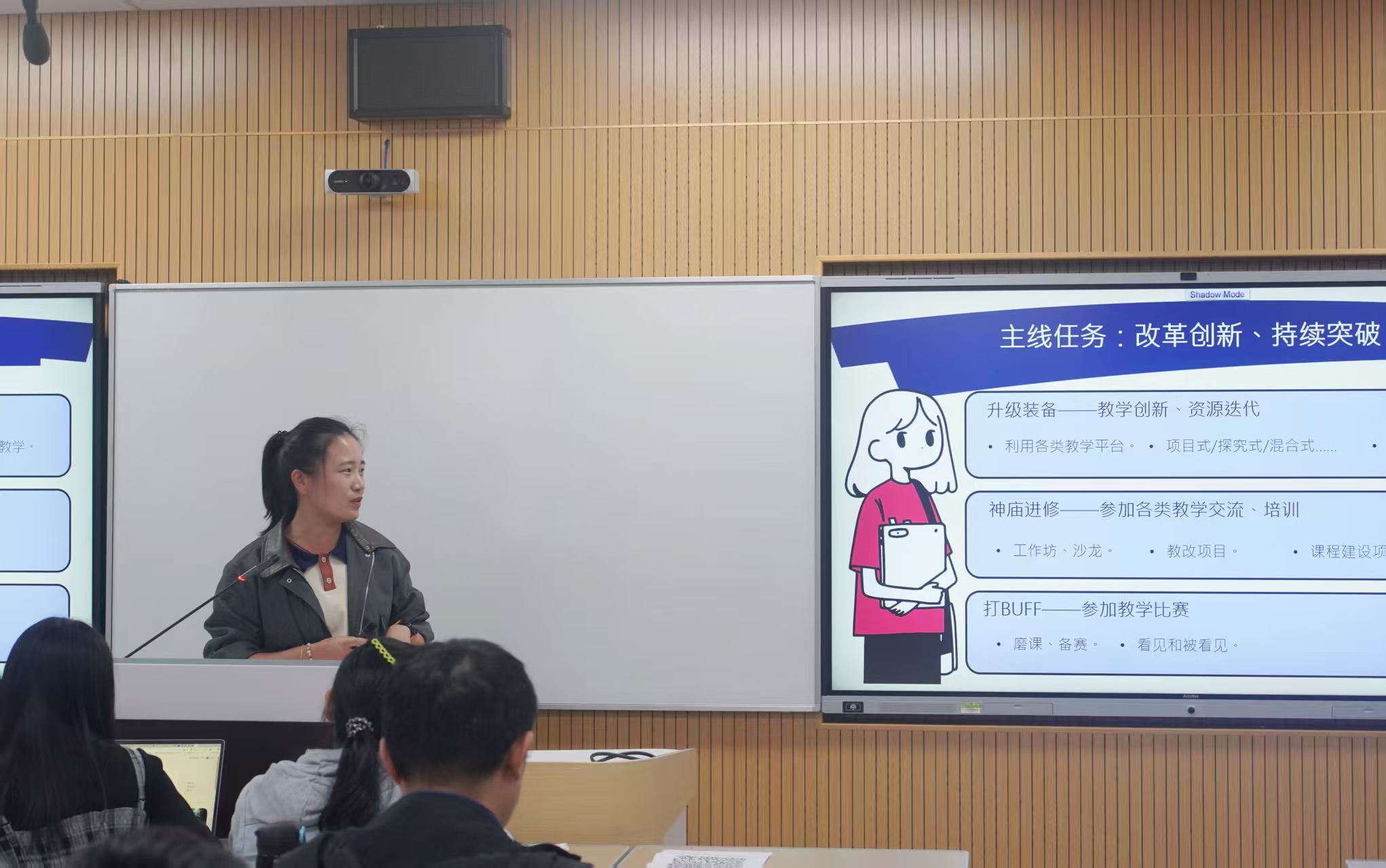 杨攀以“方向正确,行动真诚,必有回响”为教学理念,阐释了真诚教学赋予课堂的温情与生命力,并向青年教师详细介绍了从混合式教学改革到数字化体系构建的实践探索经验;李金凤从教学热情、学情把握、持续学习与跨界交流四个维度出发,系统介绍了其通过培训研修、项目申报、学术会议等途径拓展教学影响力,并借助各类实践平台推动课程建设与成果转化,实现从新手教师到成熟教育者的跨越发展;颜婷婷聚焦师范生音乐能力培养,详细介绍了她在突破传统教学模式、融合多元教学技能、系统培养学生审美化教学能力方面的探索。