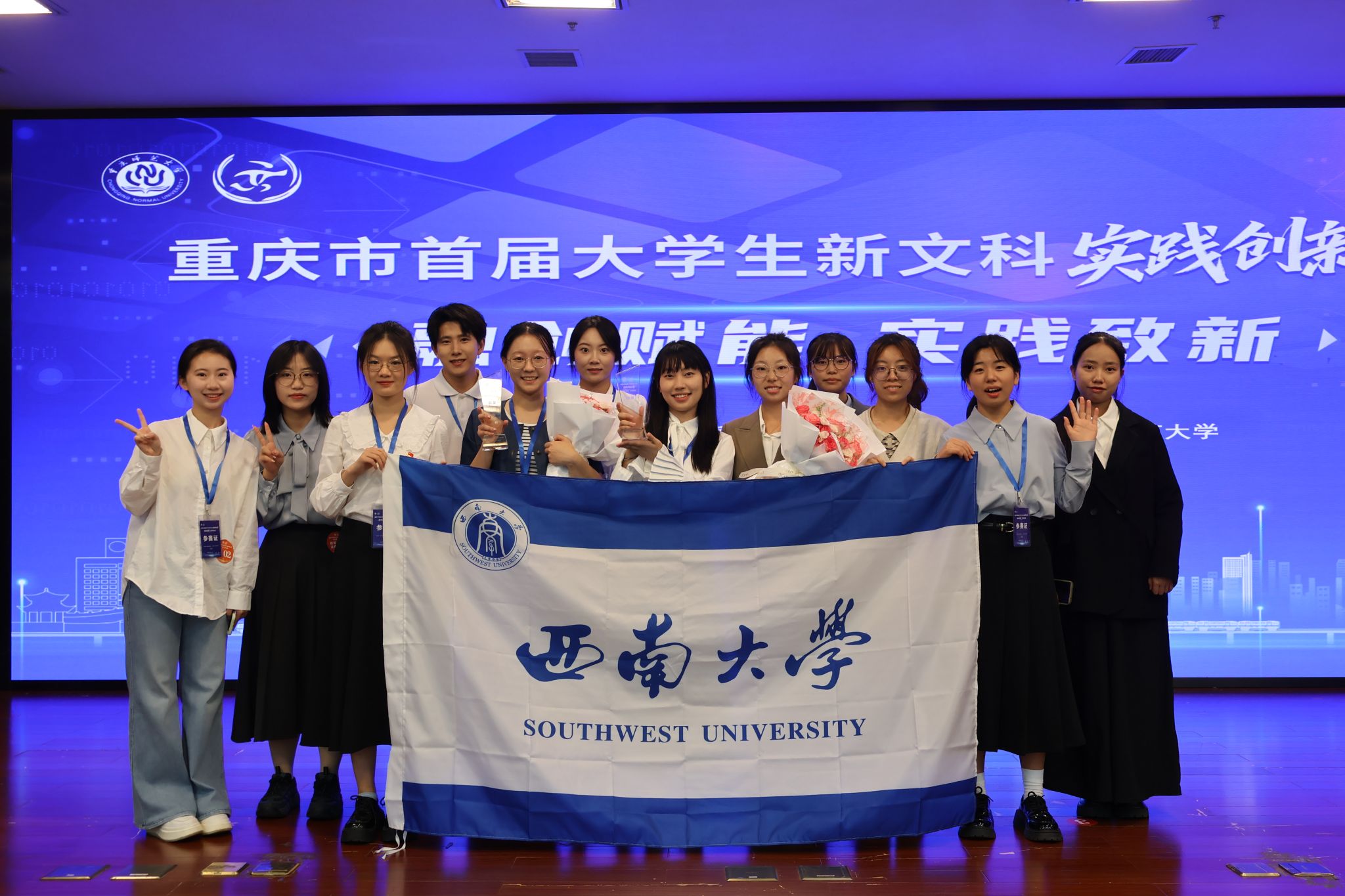 近日,由重庆市教育委员会主办的首届大学生新文科实践创新大赛圆满落幕。我校代表队表现优秀,16个项目入围市级复赛,7个项目入围市级决赛,获铜奖2项,一等奖4项,二等奖8项,三等奖1项。