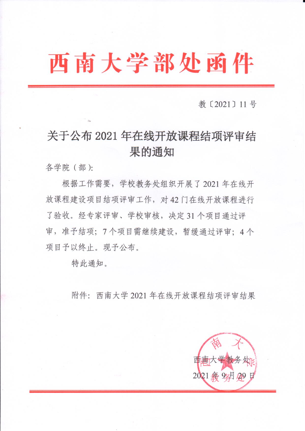 关于公布2021年在线开放课程结项评审结果的通知