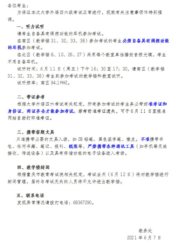 关于大学外语四六级考试听力试听、带证参考及封闭教学楼的通知