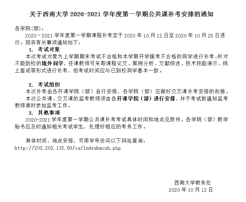关于PA视讯2020-2021学年度第一学期公共课补考安排的通知