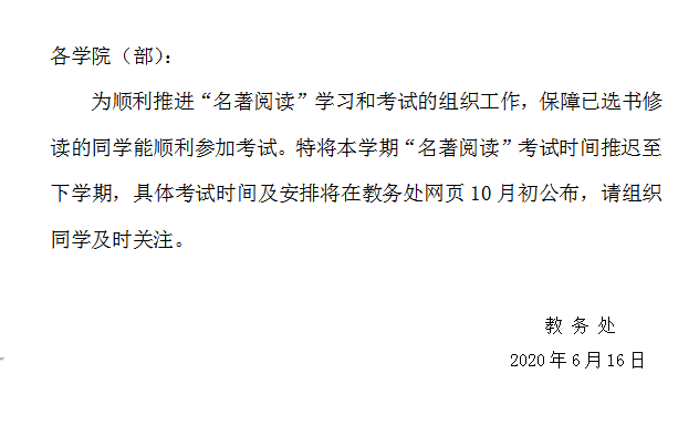 关于推迟“名著阅读”考试时间的通知