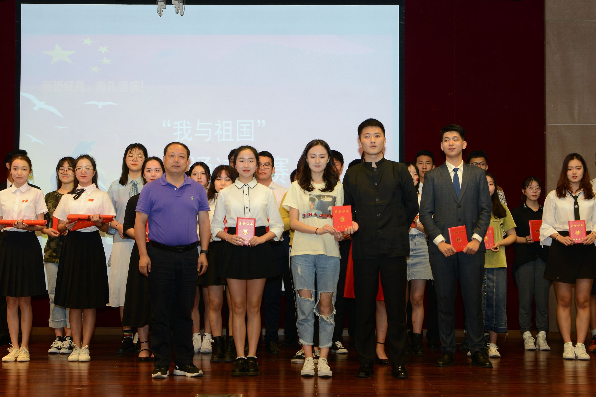 按照《教育部等八部门关于开展第22届全国推广普通话宣传周活动的通知》要求,学校围绕“普通话诵七十华诞,规范字书爱国情怀”的推普周活动主题,于2019年9月29日在国际学院会议厅举办“我与祖国”经典诵读大赛,以大力推广和规范使用国家通用语言文字,并隆重庆祝中华人民共和国成立七十周年。