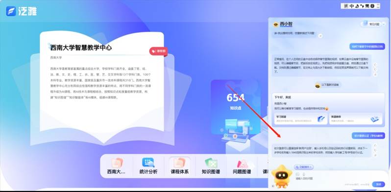学校打造“西小智”AI智能助手,在智慧教学系统使用过程中如果遇到问题,可随时请“西小智”智能助手来帮忙。