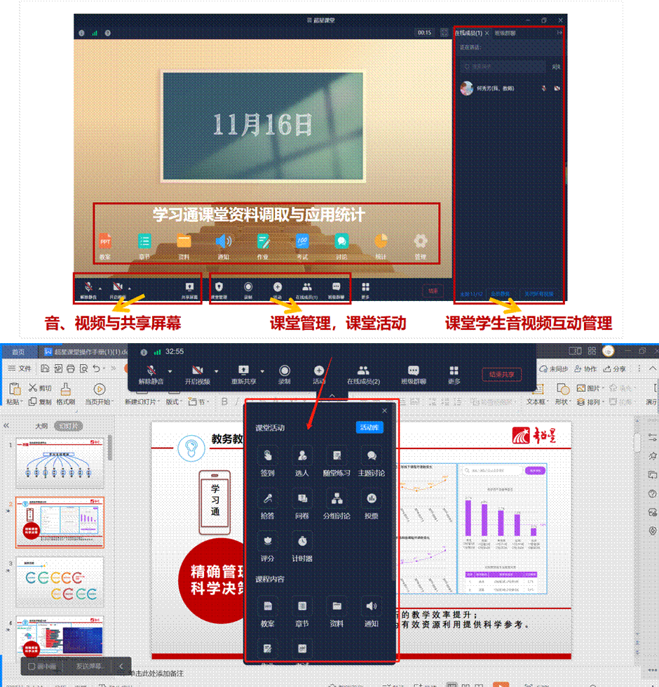 (二)课堂活动、音视频互动、共享屏幕