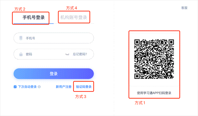 3.手机号及验证码(推荐使用登录方式);