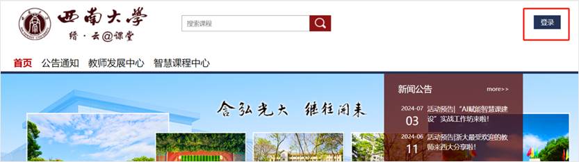 方法二:打开缙云课堂网址:http://swu.fanya.chaoxing.com/portal,点击右上角“登录”。