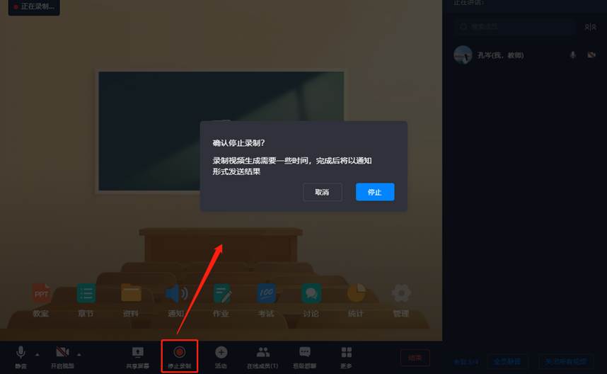 一键录制,录制视频自动保存到超星云盘存储,生成后会以通知形式发给结果给老师,存在云盘或课程资料中,支持直接插入课程供学生回看及教学视频复用。