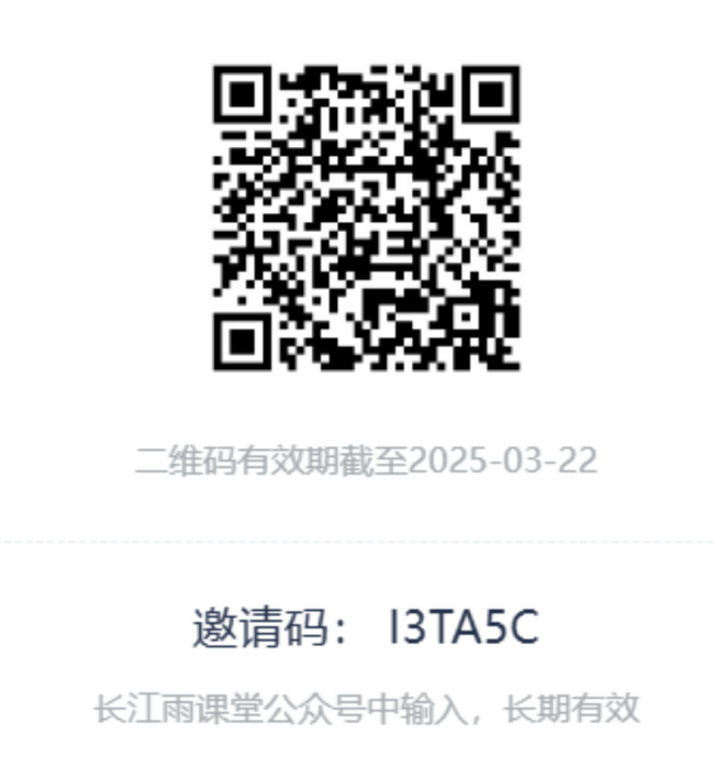 (5)加入班级:绑定后,在公众号内输入邀请码I3TA5C,或扫描下方二维码加入班级观看直播(已绑定身份的教师可直接扫码或输入邀请码参与)。