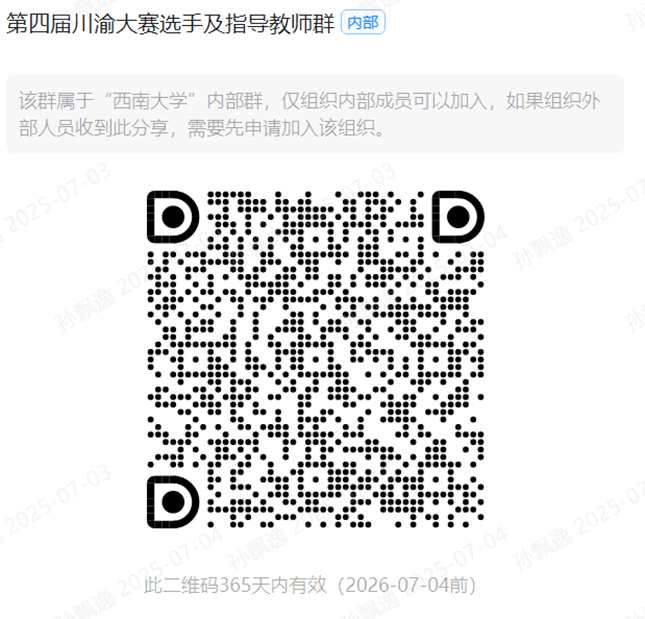 请各学院于2025年8月25日17点前将选拔推荐的学生名单和指导教师名单 (附件《通知》中的附件3)的电子版发至邮箱747251923@qq.com。并请报名选手和指导教师扫码加入工作群(二维码见后)。学校将于8月29-31日组织集体录课,请指导教师指导参赛选手务必在录课前准备好参赛作品,以顺利完成作品录制。学校本科生院和教师教育学院将对参赛作品进行指导把关并全程做好参赛服务保障工作。参赛推荐表请加盖学院公章后于开学后一周内交于6教212办公室。
