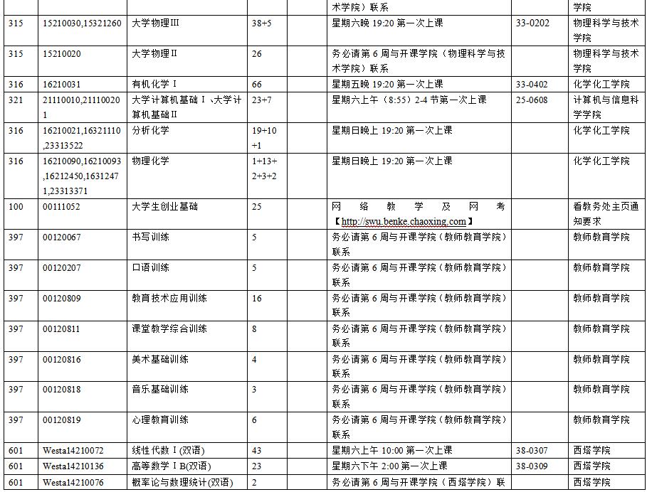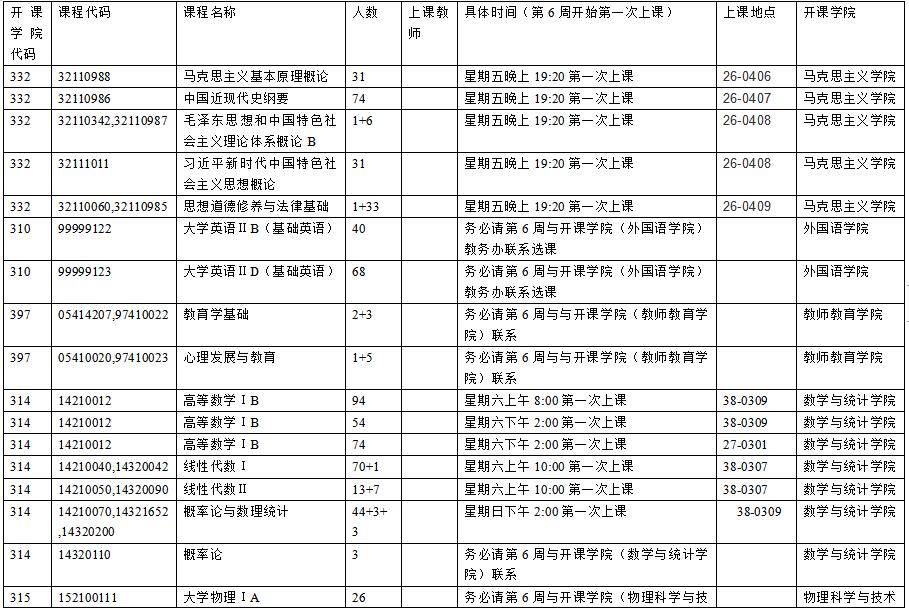 2. 不足开班人数的务必请学生自己第6周与开课学院教学办和上课老师联系;