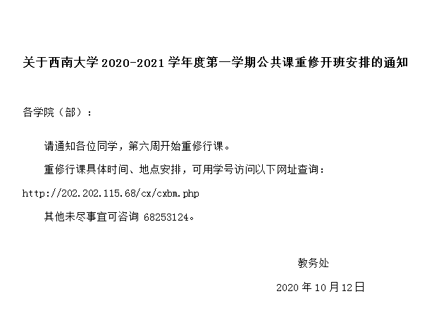 关于PA视讯2020-2021学年度第一学期重修公共课开班安排的通知