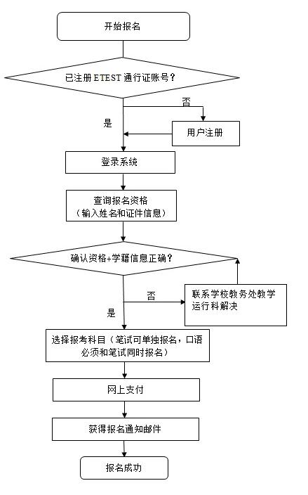 (2)本次考试全市各考点全部实行网上报名,需要参加大学英语四六级考试的同学请在规定时间内尽快完成网上报名和缴费,报名工作截止后,无法接受任何理由的补报名。