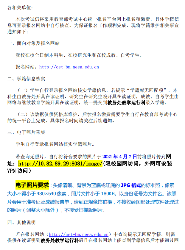 关于2021年6月全国大学外语四六级考试学籍信息维护工作的通知