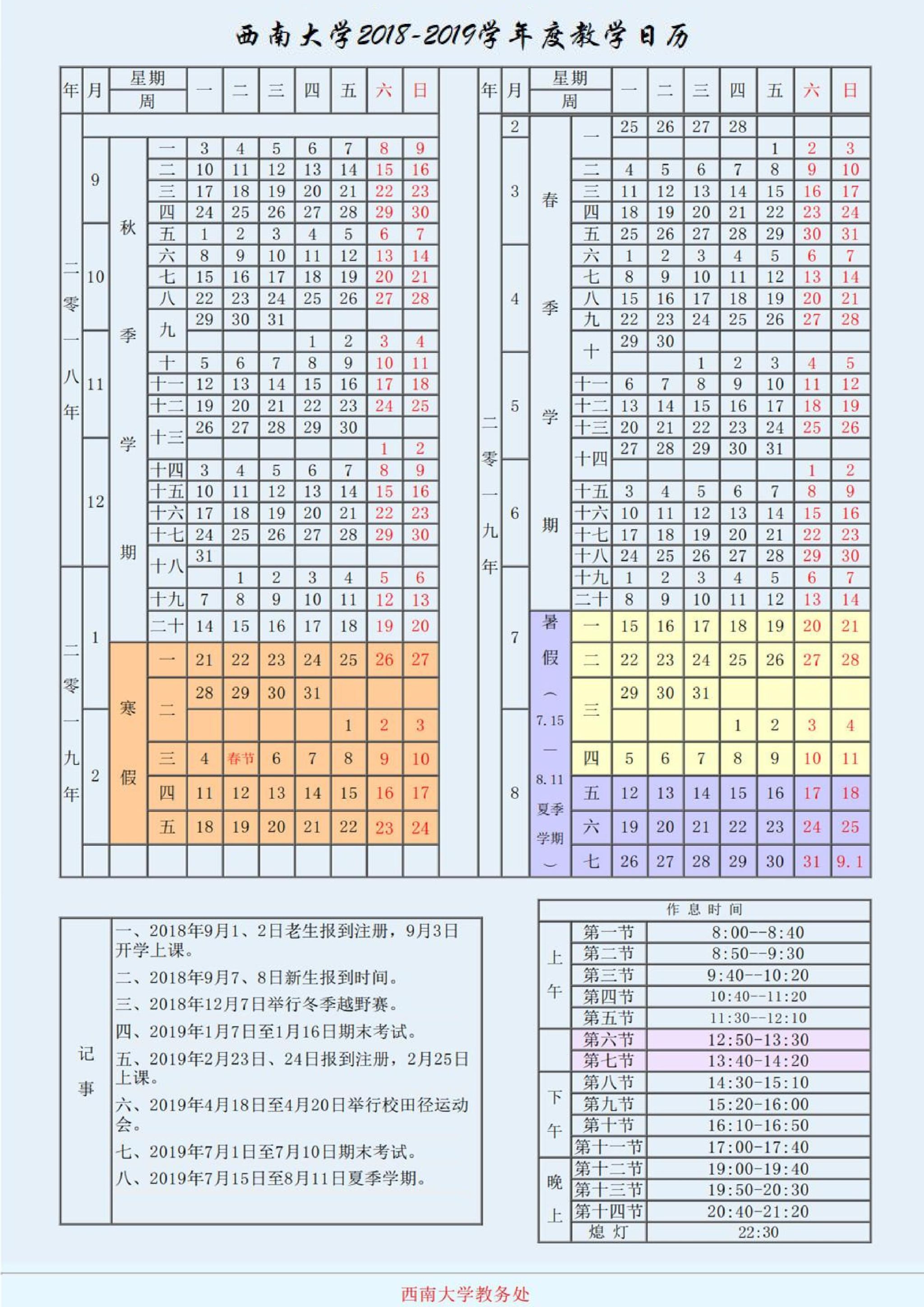 PA视讯2018-2019学年度教学日历