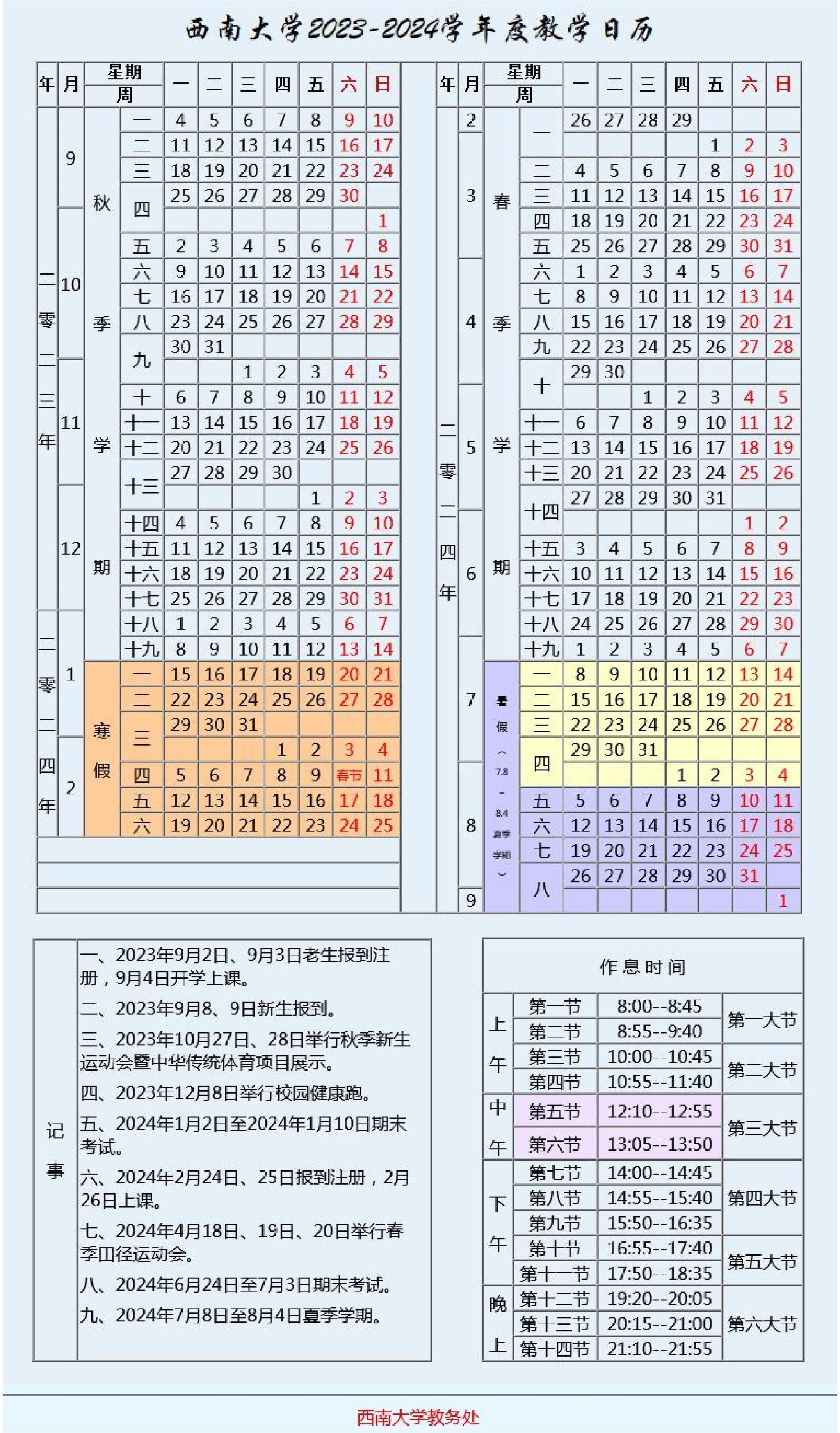 PA视讯2023-2024学年度教学日历