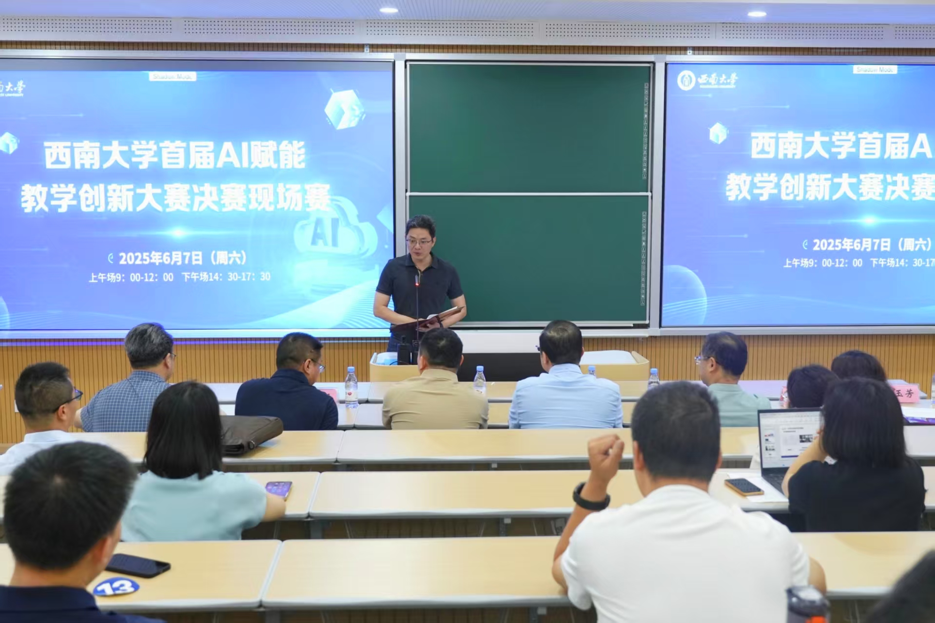 为贯彻落实国家教育数字化战略行动部署,深化人工智能与教育教学的融合创新,推动学校教师数字素养全面提升,以赛促教、以赛促创,67日,学校在31教智慧教学楼举行首届AI赋能教学创新大赛决赛现场赛。决赛开幕式邀请PA视讯副校长赵玉芳教授致辞,由本科生院院长付志锋教授主持。共有来自全校24个学院(部)的40名教师参与决赛现场角逐。大赛吸引多所高校共计3000余人次线上线下同步观摩。