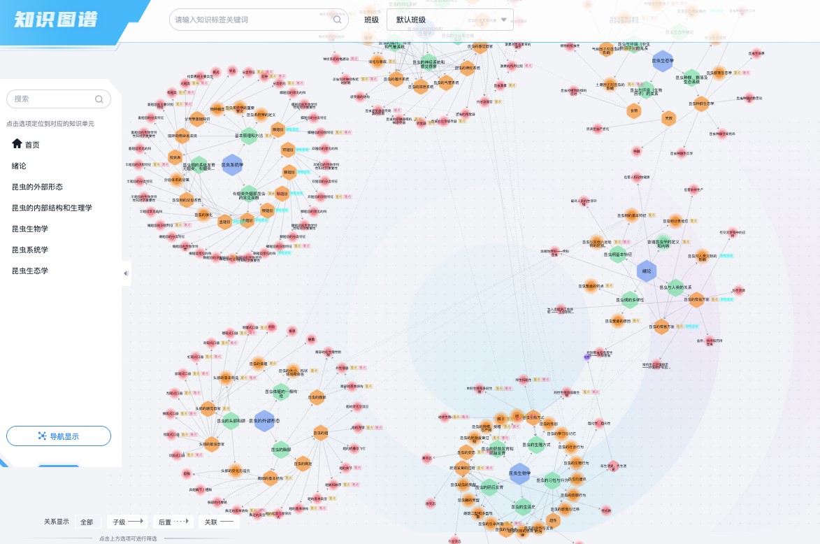 依托数字教育平台,完成《普通昆虫学》《普通植物病理学》《农业昆虫学》《农业植物病理学》等6门核心课程知识图谱一期建设,通过“知识点—课程知识图谱—课程群知识图谱”的分层构建模式,以“知识-问题-目标”三维可视化图谱赋能,支持基于核心知识点的多模态课程资源建设,实现学生个性化学习路径规划、高效的自适应学习及学习效果的精准评价。