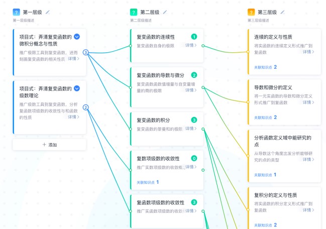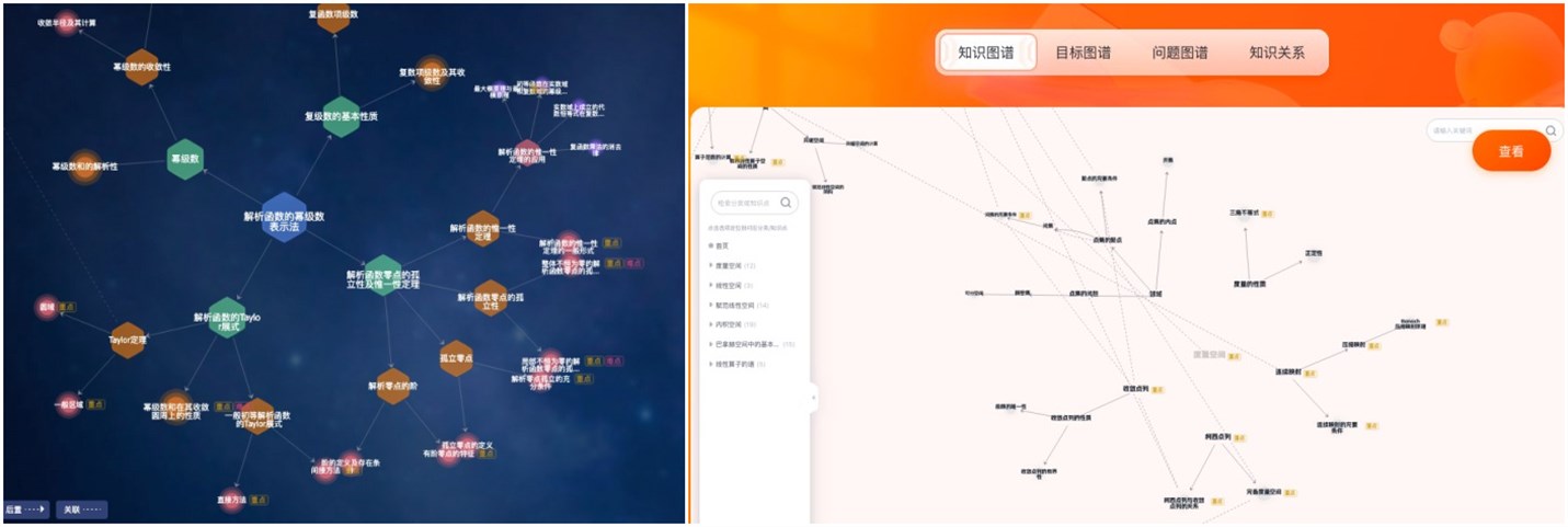 以《数学分析》《高等代数》《概率论与数理统计》等11门核心课程为基点,系统性构建多层级知识图谱体系,拆解2000余个知识点并精准标注逻辑关系,实现分析、代数、几何、方程、概率论等分支学科的跨学科关联网络可视化,让抽象数学知识直观可触。