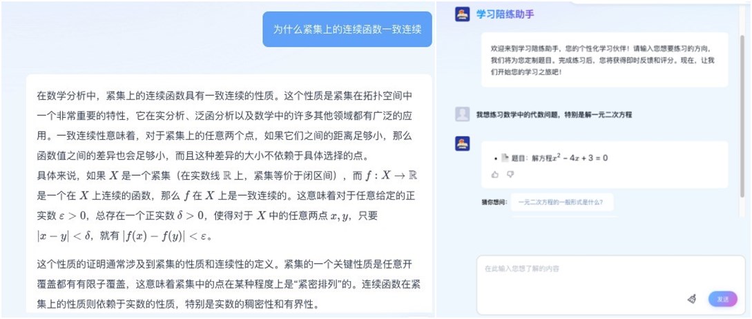 在“AI+数学”的深度融合实践中,平台创新推出多项智能工具。手写推导可一键转化为标准LaTeX公式,解决公式编辑难题;智能学习助手通过苏格拉底式对话主动推荐学习任务,精准定位学生薄弱知识点;智能助教系统解答“紧集上连续函数为何一致连续”等抽象问题,助力学生深度理解数学原理。