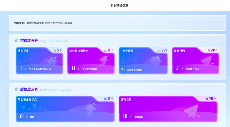 通过整合课程体系、专业图谱、学术成果、师资队伍等核心数据,同时建立数学教育资源共享库,促进数学与应用数学、统计学专业的协同发展,助力学院实现学科建设的科学决策与动态优化。