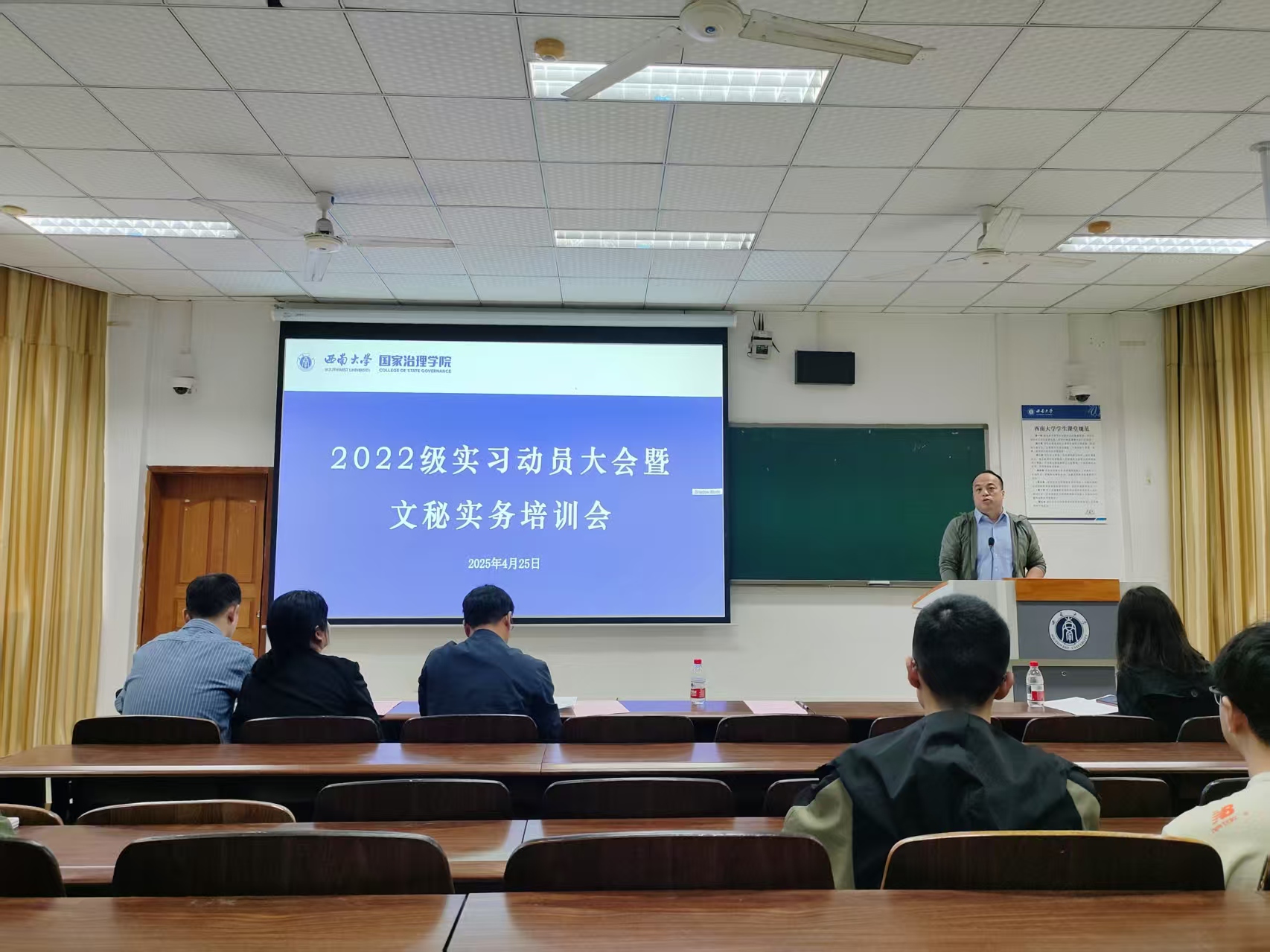 郭美云副院长则为同学们深入解读实习的社会价值,强调实习是“社会初体验”,鼓励学生以“准职业人”身份投入工作,要像“社会毛细血管”般深入观察组织运行机理,在实践中彰显西大学子的责任担当。同时,他也提醒同学们注意人身安全,及时与学院沟通,饱含人文关怀。