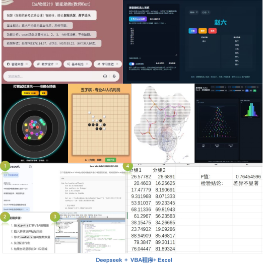 AI + 融合创新:让抽象知识 “具象化落地”。AI与教学的深度融合,更让原本晦涩的统计知识变得可感可知:讲解正态分布时,“AI+HTML”生成的交互动画,允许学生拖动参数调整曲线形态,让抽象规律在动态演示中一目了然;开展田间试验设计教学时,“AI+3D 建模”构建的虚拟场景,让学生无需实地参与,也能亲手调整小区布局、模拟土壤差异,在“动手试错”中深化对试验设计原理的理解。此外,“AI+VBA”实现实验数据自动化处理,“AI+ima 知识库”提供即时可查的案例资源,这些创新形式让知识传递更高效,也进一步激发了学生的探索欲。
