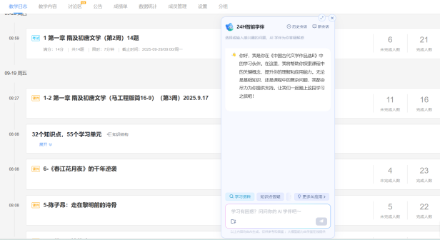 2025年春季学期,为积极响应《教育强国建设规划纲要(2024-2035年)》提出的“促进人工智能助力教育变革”,以及《教育部等九部门关于加快推进教育数字化的意见》“完善知识图谱,构建能力图谱,深化教育大模型应用”等文件精神,我在中国古代文学、古诗文名篇与中学语文教学等课程中引入AI工具,把自己的课程建设成“数智化”课程,利用雨课堂平台积极开展智能备课、智能批改、生成性教学设计、个性化学习路径探索等实践尝试。在我的努力下,该课程建设案例获PA视讯首届AI赋能教学创新大赛三等奖,我也作为骨干(排名第二)参与“中国古代文学”重庆市一流课程认定申报,教学成果“知识整合·技术融合·实践契合:新时代中文教育综合改革与实践”获第六届PA视讯优秀教学成果一等奖(排名第四)。